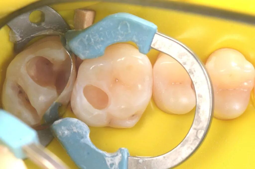 图5. 龋洞清理完成。准备酸蚀和黏结。