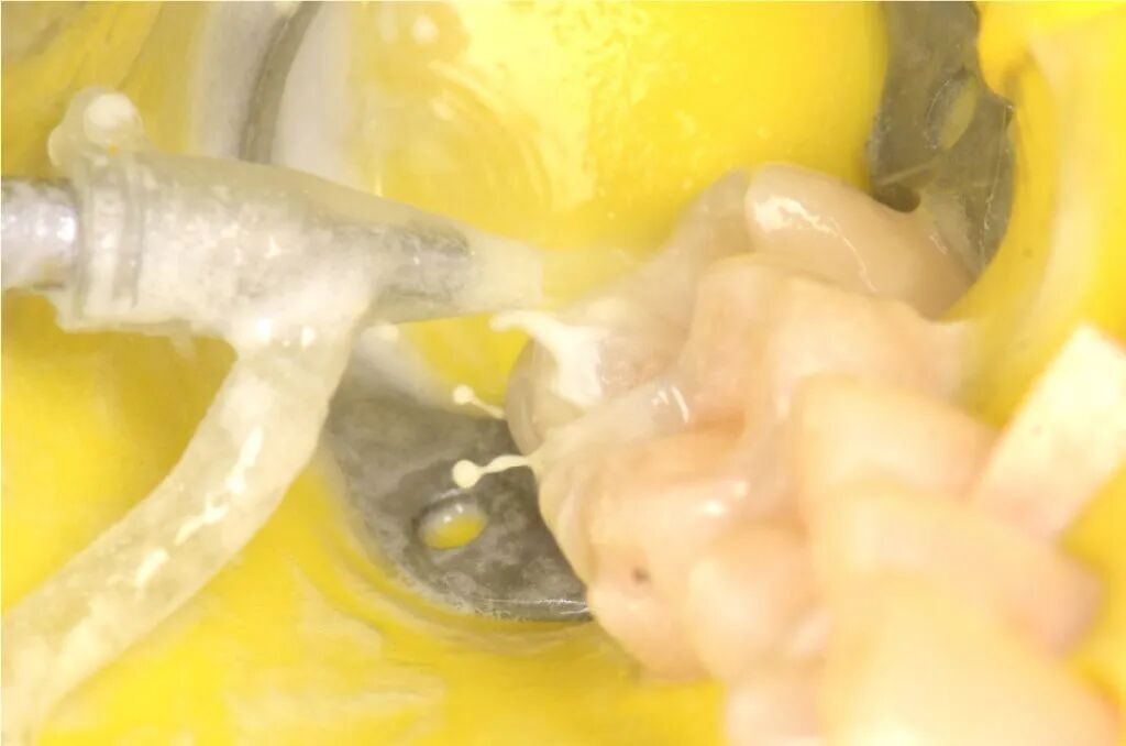图3. 局部麻醉,橡皮障隔离,清理牙齿。