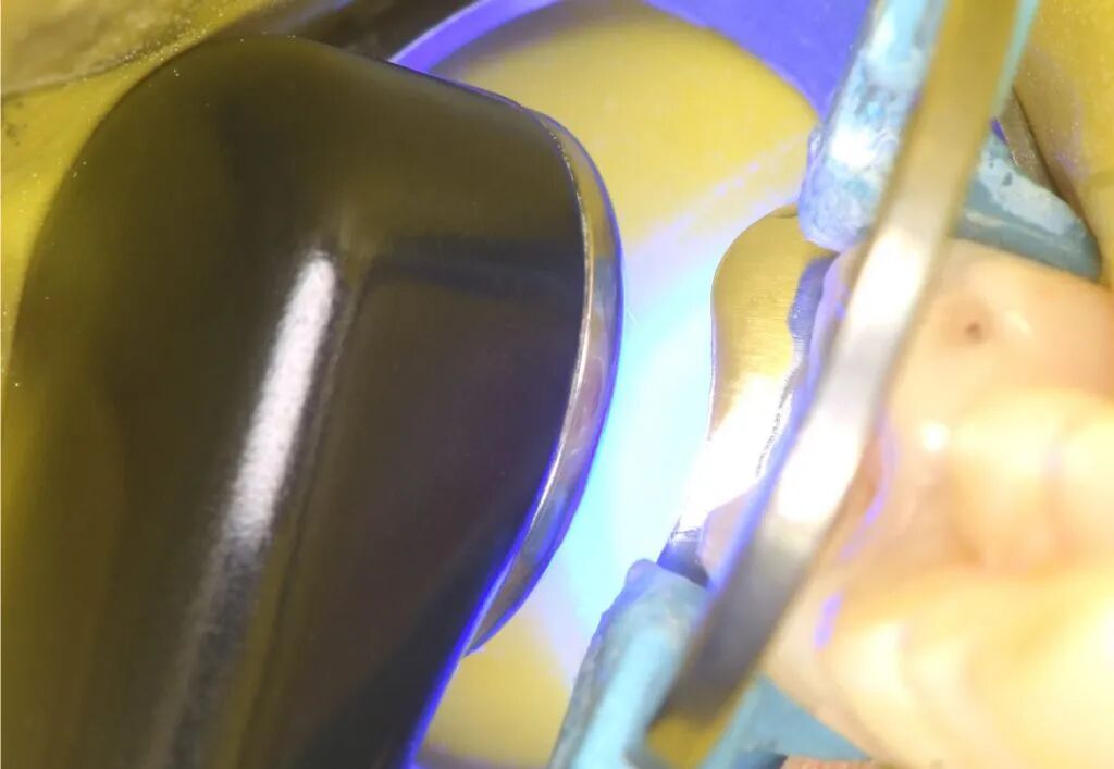图4. 清除龋损后,29μm氧化铝喷砂清理洞壁、洞缘。