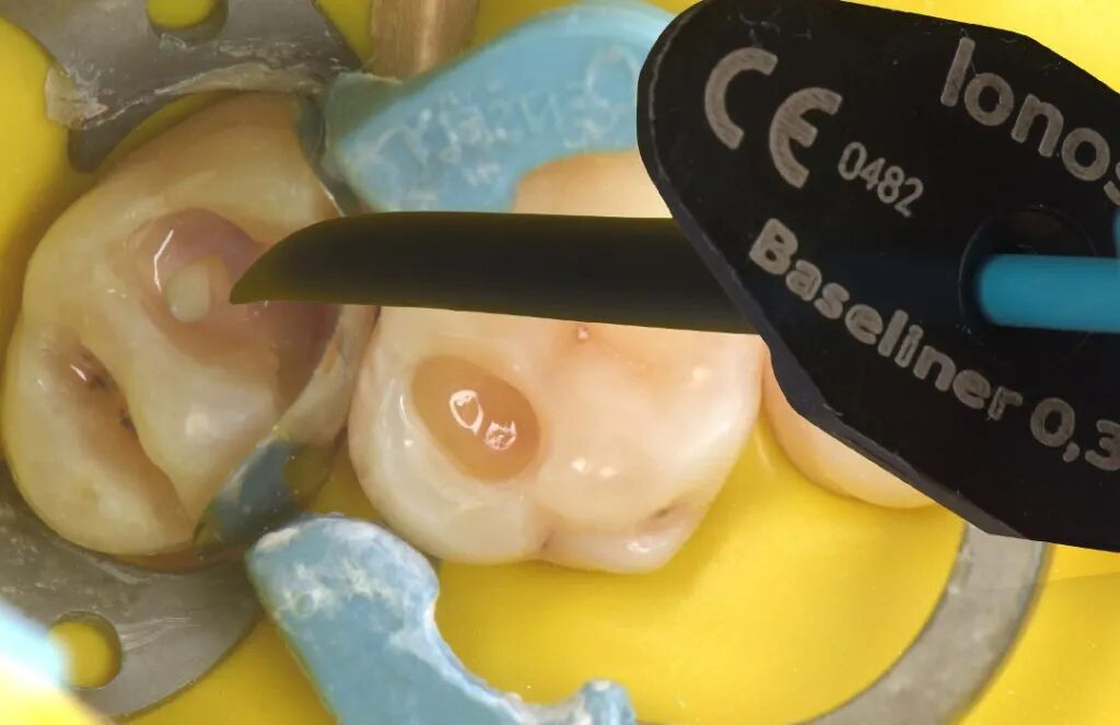 总结Ionosit Baseliner可以被用作复合树脂修复的垫底材料,其被设计为一种树脂填料可以补偿聚合收缩,减少边缘缝隙和术后敏感。抵消复合树脂充填的聚合收缩是其最突出的优点,另外也能预防边缘缝隙的形成。当有缝隙存在于充填物和牙齿之间时,细菌的进入会导致继发龋的发生。Ionosit Baseliner与牙本质反应,封闭牙本质小管,防止缝隙的形成,保护牙髓免受外源性刺激。其还具有阻射性,可在X线片上观察到,并释放氟化物,起到防蛀作用。此外,其中锌成分具有抗菌性能,有助于预防继发龋。总的来说,Ionosit Baseliner是一种可靠耐用的材料,有助于无应力和持久的复合树脂修复。