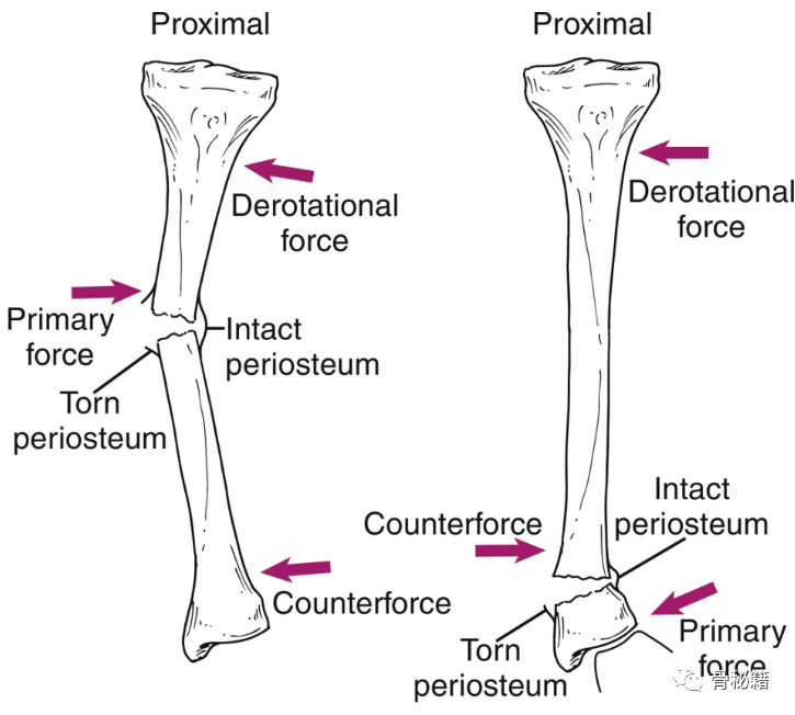单纯的牵引往往较难直接复位这时需要对侧施加反向的力来对抗牵引从而复位骨折