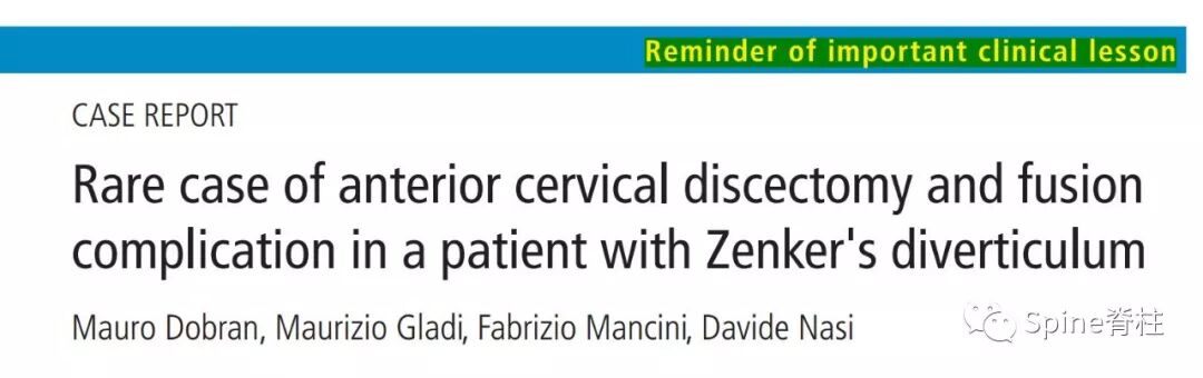 2018年,意大利学者Mauro Dobran教授在BMJ Case Rep也发表了一例典型的颈前路术后食管憩室病例。