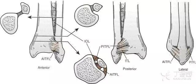 包括骨间韧带(IOL),下胫腓前韧带(AITFL),下胫腓后韧带(PITFL),下横韧带(ITL);
