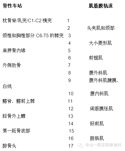 1、胫骨后肌处筋膜松解患者体位:仰卧位;评估:足有无内外翻;治疗:小腿中下1/2处,双手四指相对,内侧手沿胫骨后缘插入,外侧手从比目鱼肌和腓骨肌间插入,相互透力,嘱患者踝背伸/跖屈,双手随之上下滑动分离。若足内翻则内侧手向下滑,外侧手向上交错,足外翻则内侧向上外侧向下。