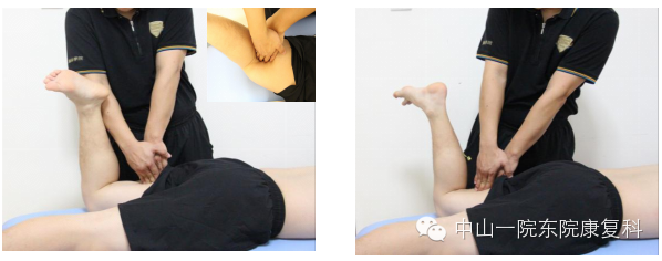 1、伸肌支持带患者体位:仰卧位,小腿露出床面;操作程序:治疗师双手半握拳放在足背上,肘关节伸直,利用身体重量,双手往上推, 患者配合缓慢做踝关节背伸-跖屈。
