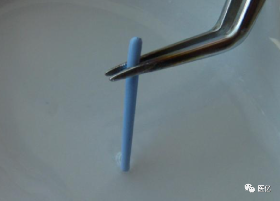 试好的主牙胶尖经过X线评价合适后放入2.5%的次氯酸钠中消毒备用,一般3分钟之后就可以达到消毒标准,然后充填时用气枪吹干,不能用棉球或者纱布擦。