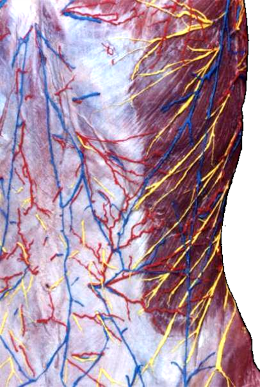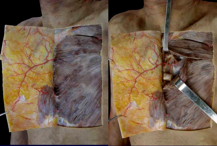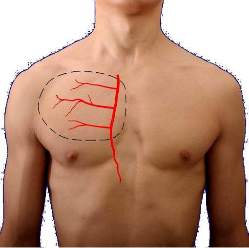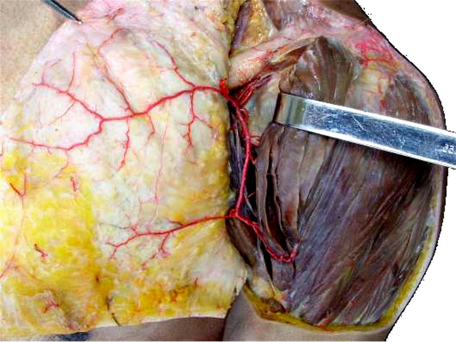 第2、3肋间穿支:外径0.8-1.3 mm,胸骨外侧约1cm处穿出,皮下走行长10~12 cm
