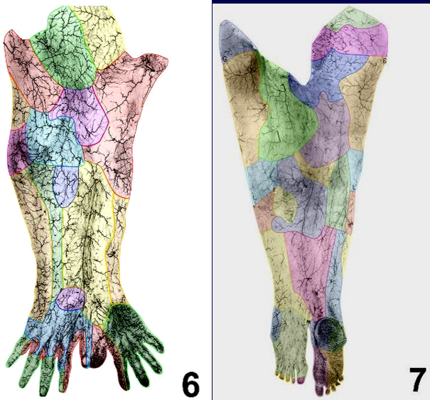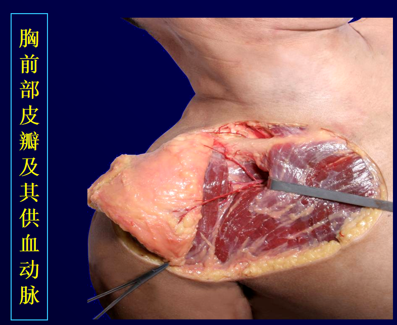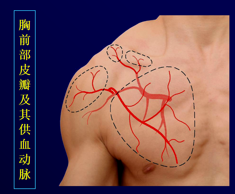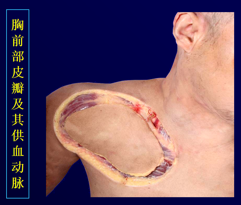 穿支皮瓣特征:(1)仅以穿支为蒂切取瓣(不涉及源动脉);(2)以穿支穿过深筋处为基准;(3)除蒂部外,不涉及深筋膜及其他深部组织