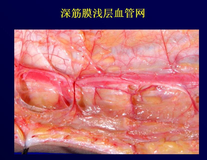 穿动脉(穿支):穿过深筋膜进入皮下组织与皮肤。