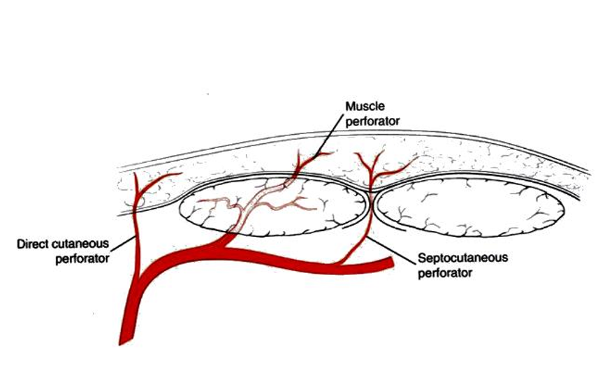 肌皮穿支:间接穿支、肌间隔(隙)穿支