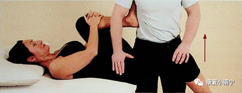 让髋部处于较为屈曲的位置将使髂腰肌处于较放松的状态,这将有助于它的收缩并帮助减少不适感。患者被要求屈曲右髋,以对抗治疗师施加的阻力。