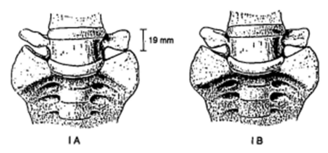 正常I型:主要为腰5横突发育不良,横突宽度大于19mm,并将其分为两个亚型Ia(单侧横突发育不良)或Ib(双侧横突发育不良)