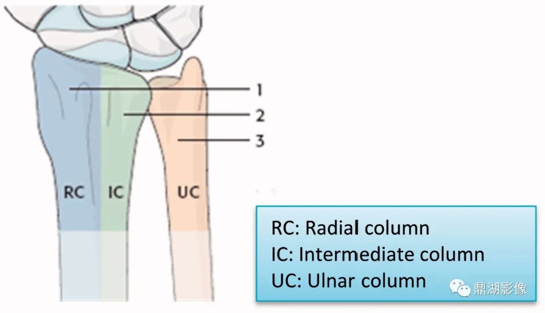 Rikli等根据受力等因素,将腕部分为三个柱型结构,帮助理解桡骨远端骨折。