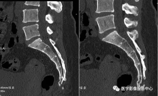 病人女性,外伤后骶尾部疼痛,dr片示骶尾关节对应关系差,骶5椎体欠规则。ct重建示骶5椎体粉碎性骨折!