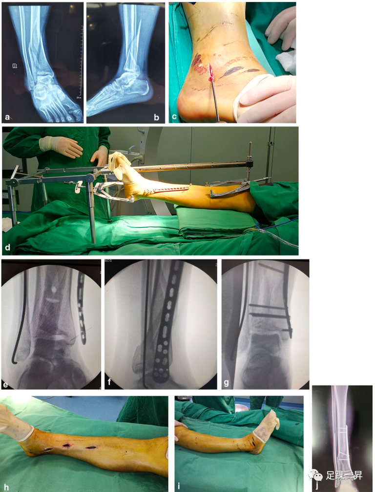 考虑到高能量Pilon骨折的短期和长期预后,替代治疗有被提议。这些损伤可能与严重的不可逆软骨损伤有关,保踝治疗并不总是可取的。在某些情况下,可以根据患者和损伤因素考虑进行急性初次关节融合术。已经描述了几种初次关节融合术的方法,包括刀片钢板固定、后足髓内钉固定、环形外固定和钢板内固定。