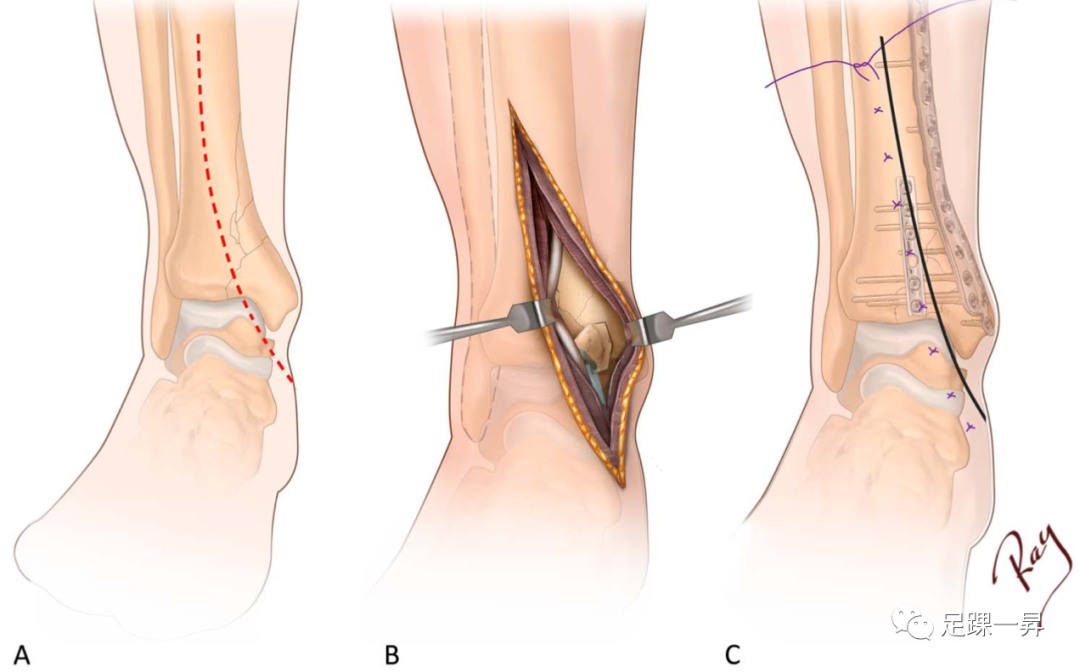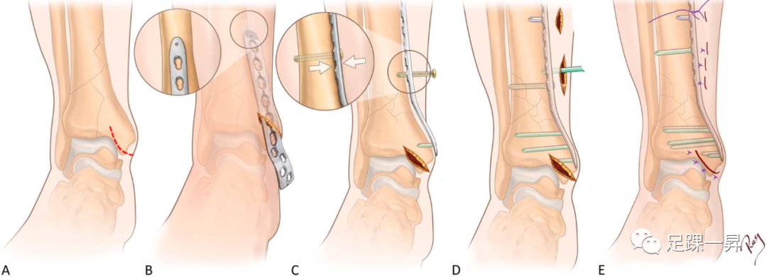 传统上,Pilon骨折固定的核心原则是固定腓骨以恢复外侧柱长度并帮助复位。