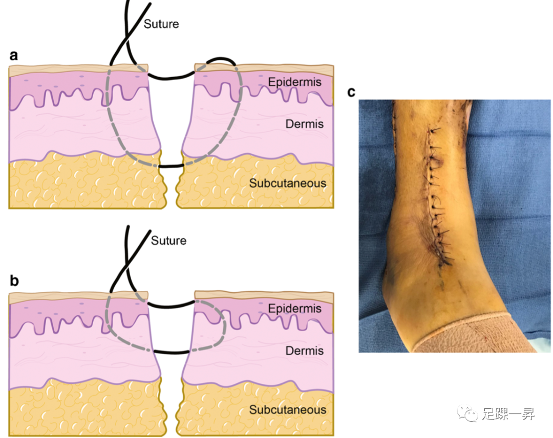 △图示Donati垂直褥式缝合(a)和Allgöwer-Donati缝合示意图。
