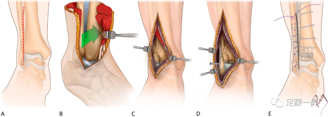 腓骨固定增加外侧柱的稳定性有可能导致胫骨远端骨不连。
