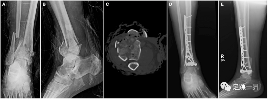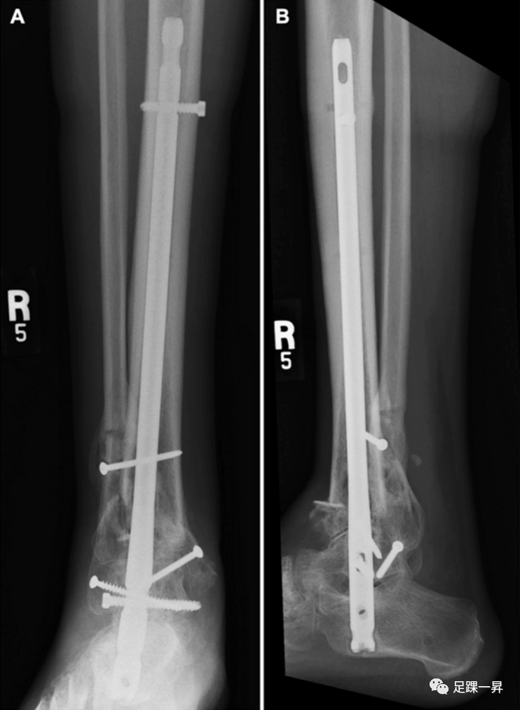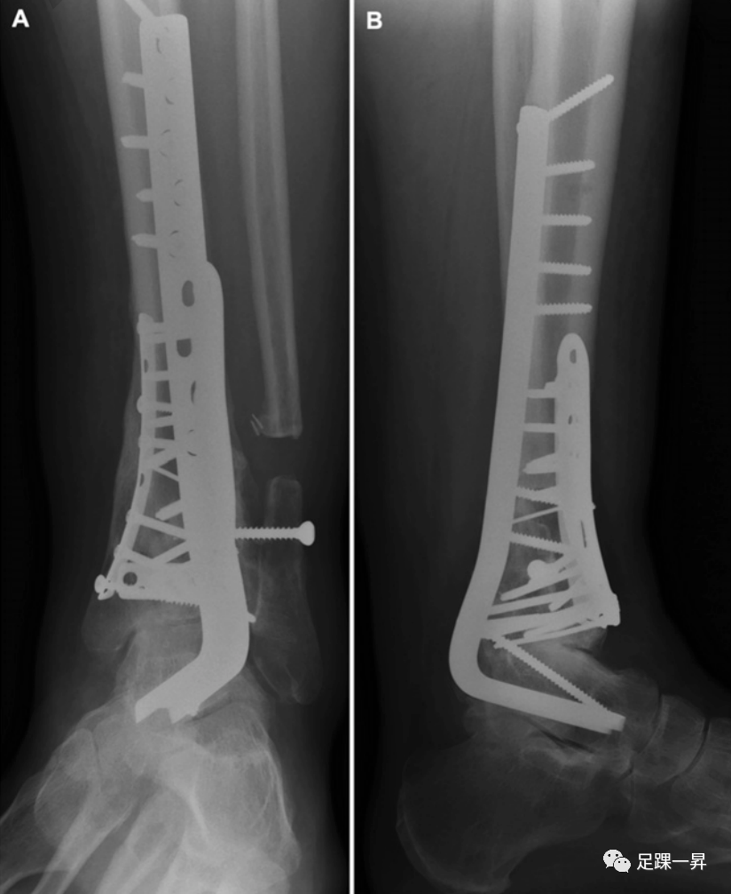 一项回顾性研究显示,在16年的时间内,使用后路刀片钢板对20例OTA/AO型43 B和43 C骨折进行踝关节融合术后的结果,其中17例患者的平均年龄为39岁,至少随访2年。影像学愈合平均132天,所有患者均报告在末次随访时无需辅助装置即可行走。1例患者出现骨不连,需要翻修。Bozic等人报告了类似的结果。