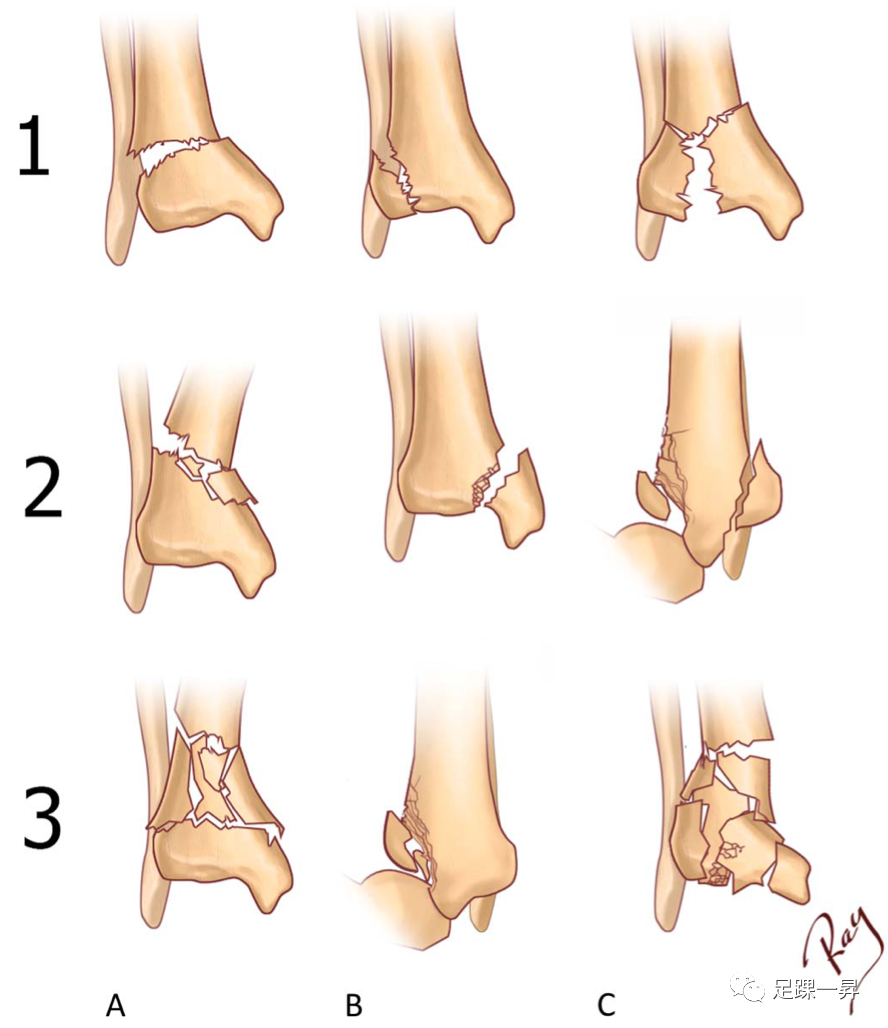 △图示Pilon骨折的Rüedi-Allgöwer分型。