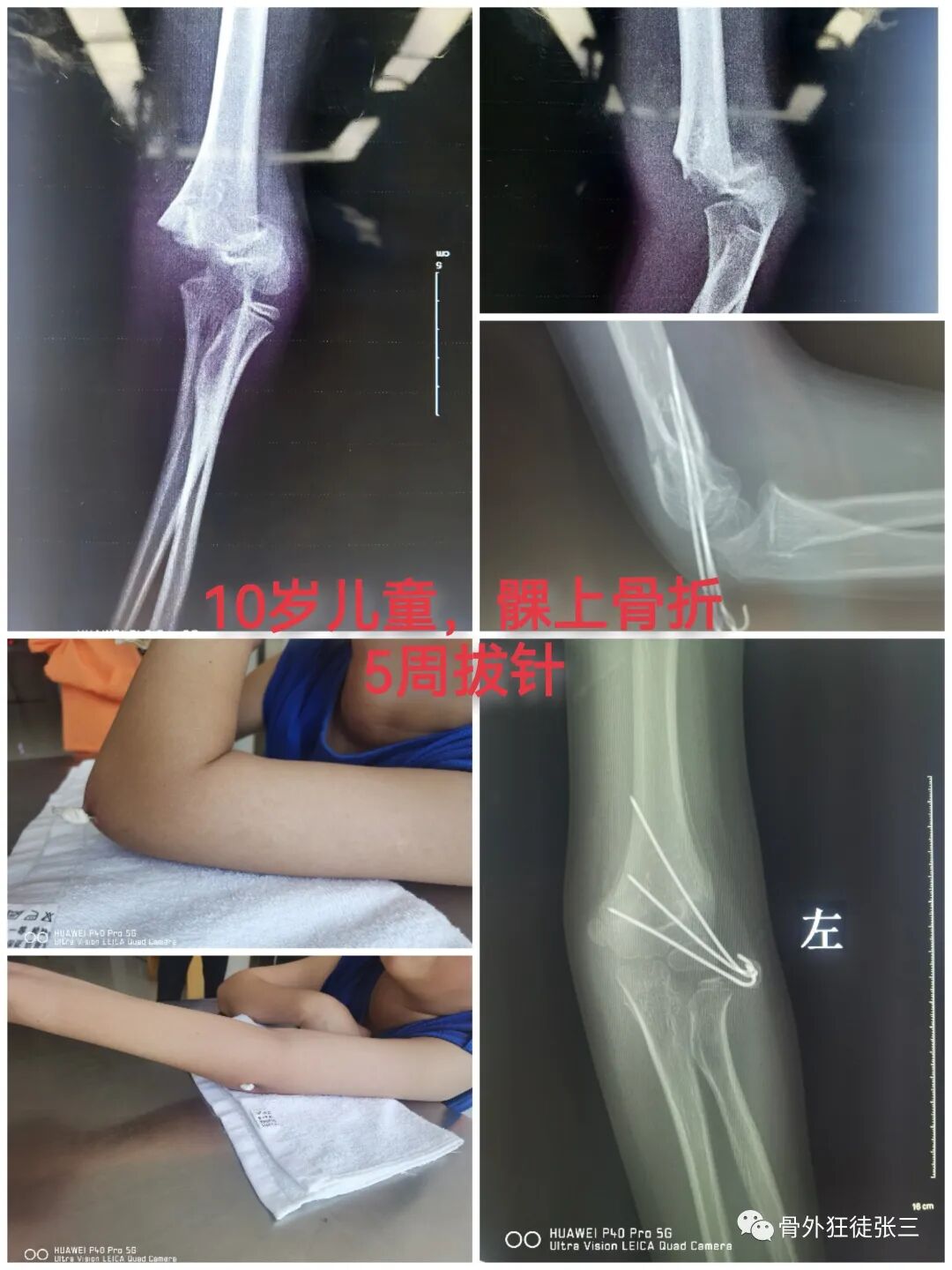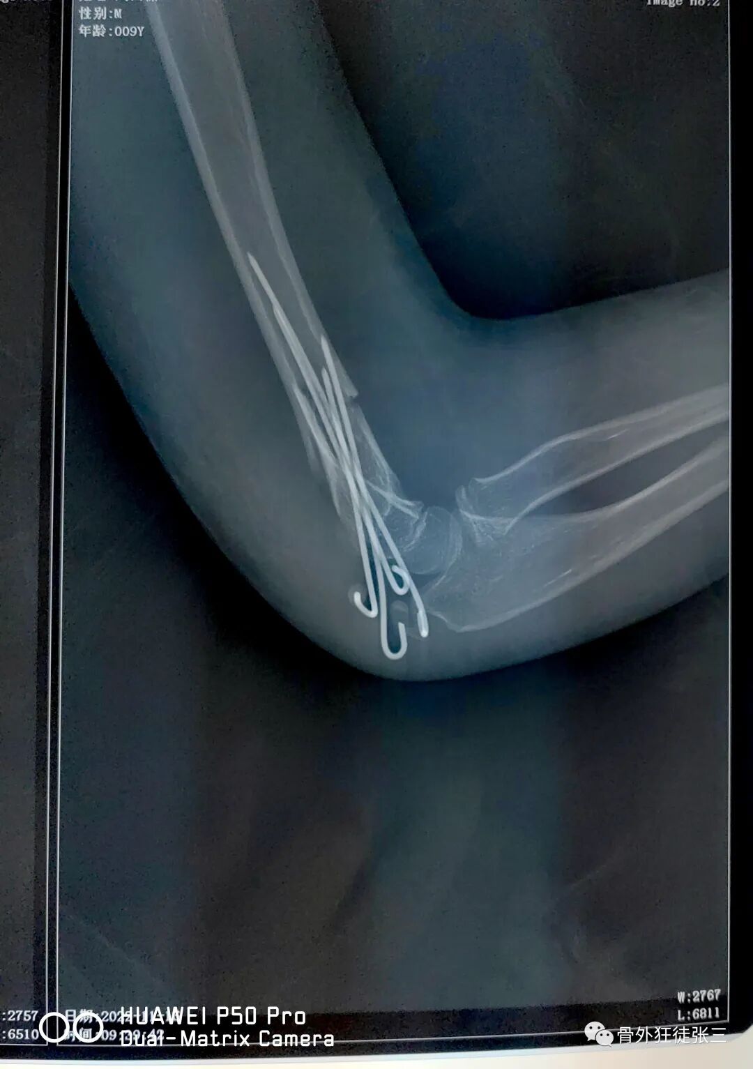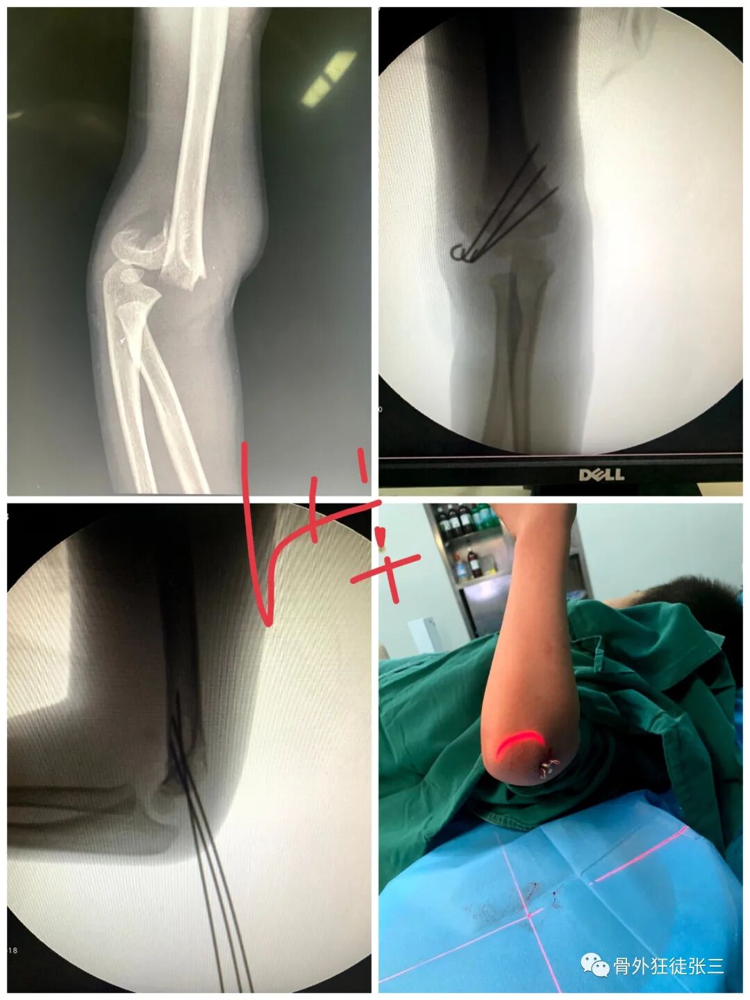 病例14,儿童髁上骨折零切开,桡侧三枚针发散固定