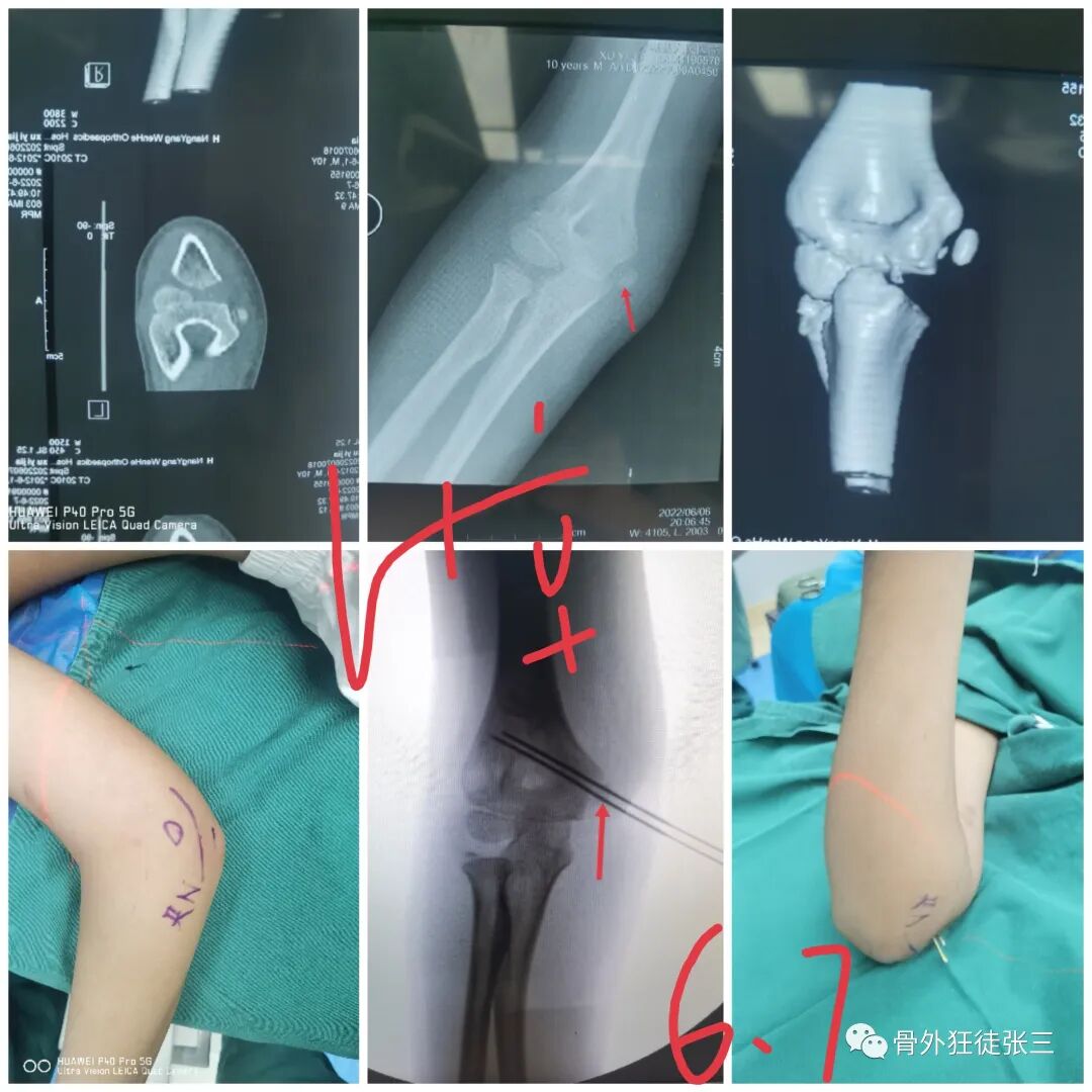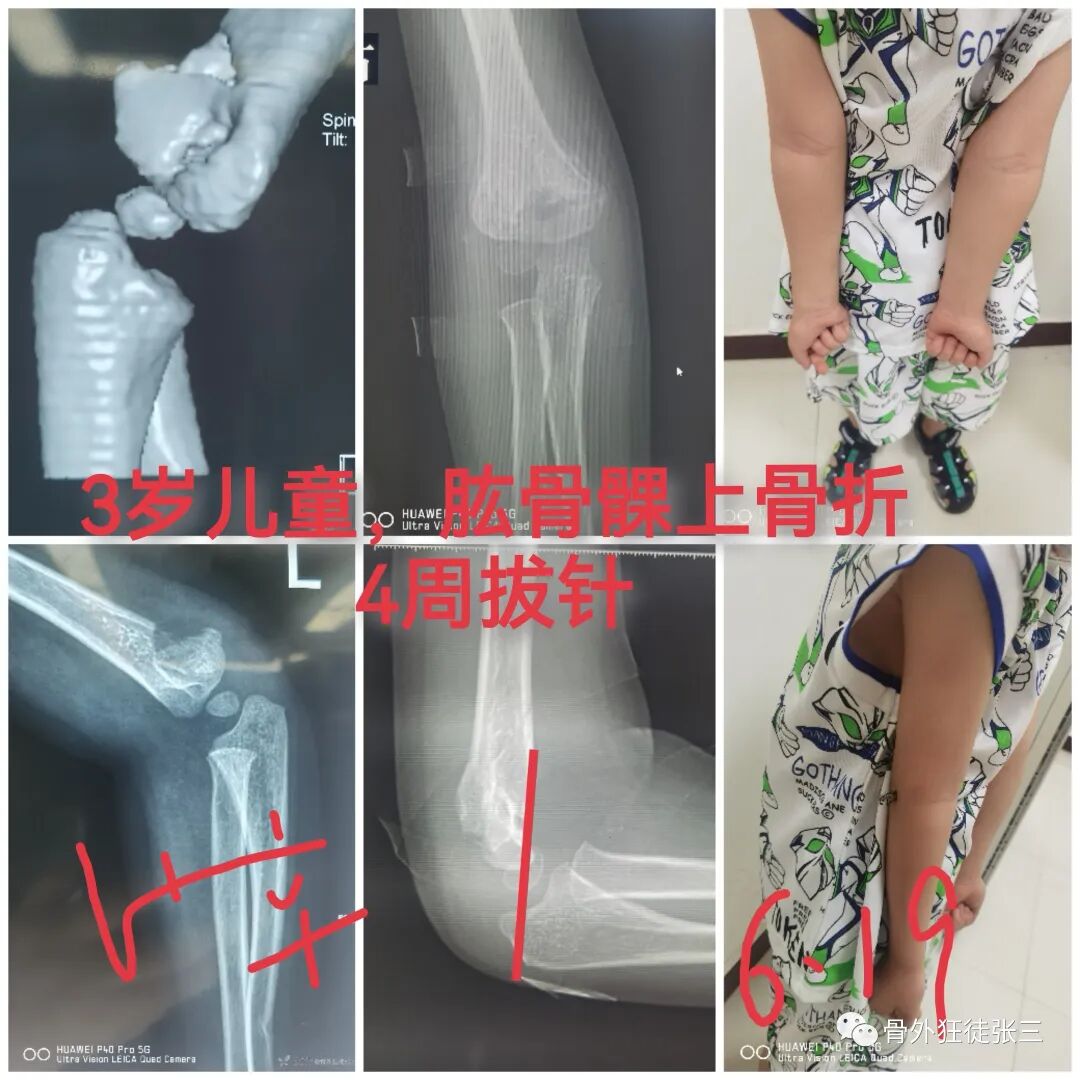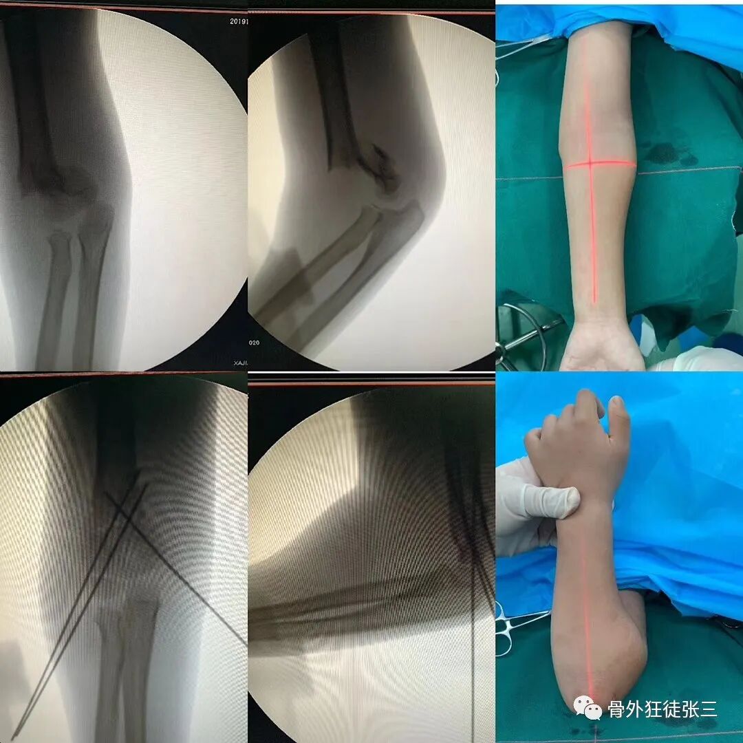 病例14,儿童髁上骨折零切开,桡侧三枚针发散固定