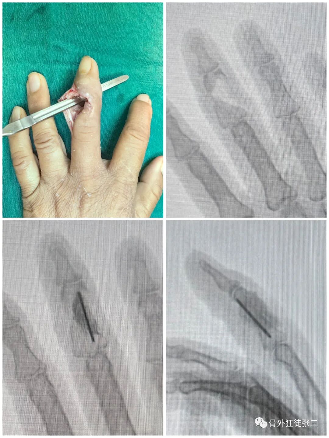 病例25,开放性粉碎性指骨骨折,克氏针固定