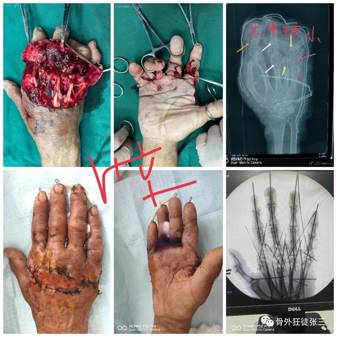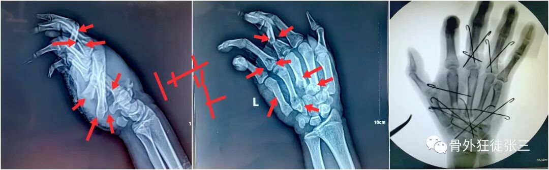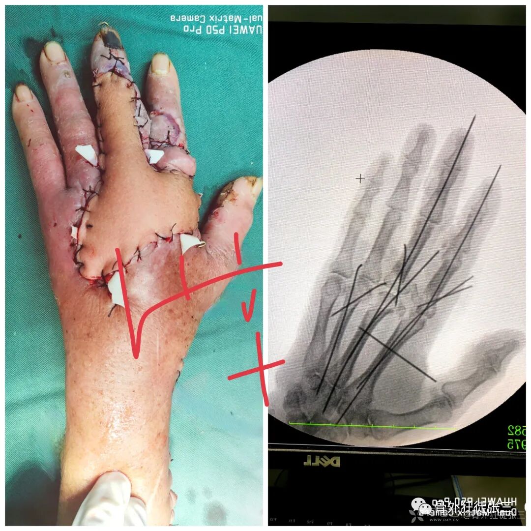 病例23,严重复杂手外伤,多发骨折,克氏针固定