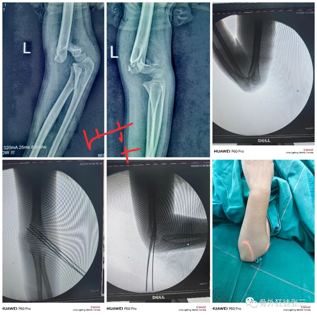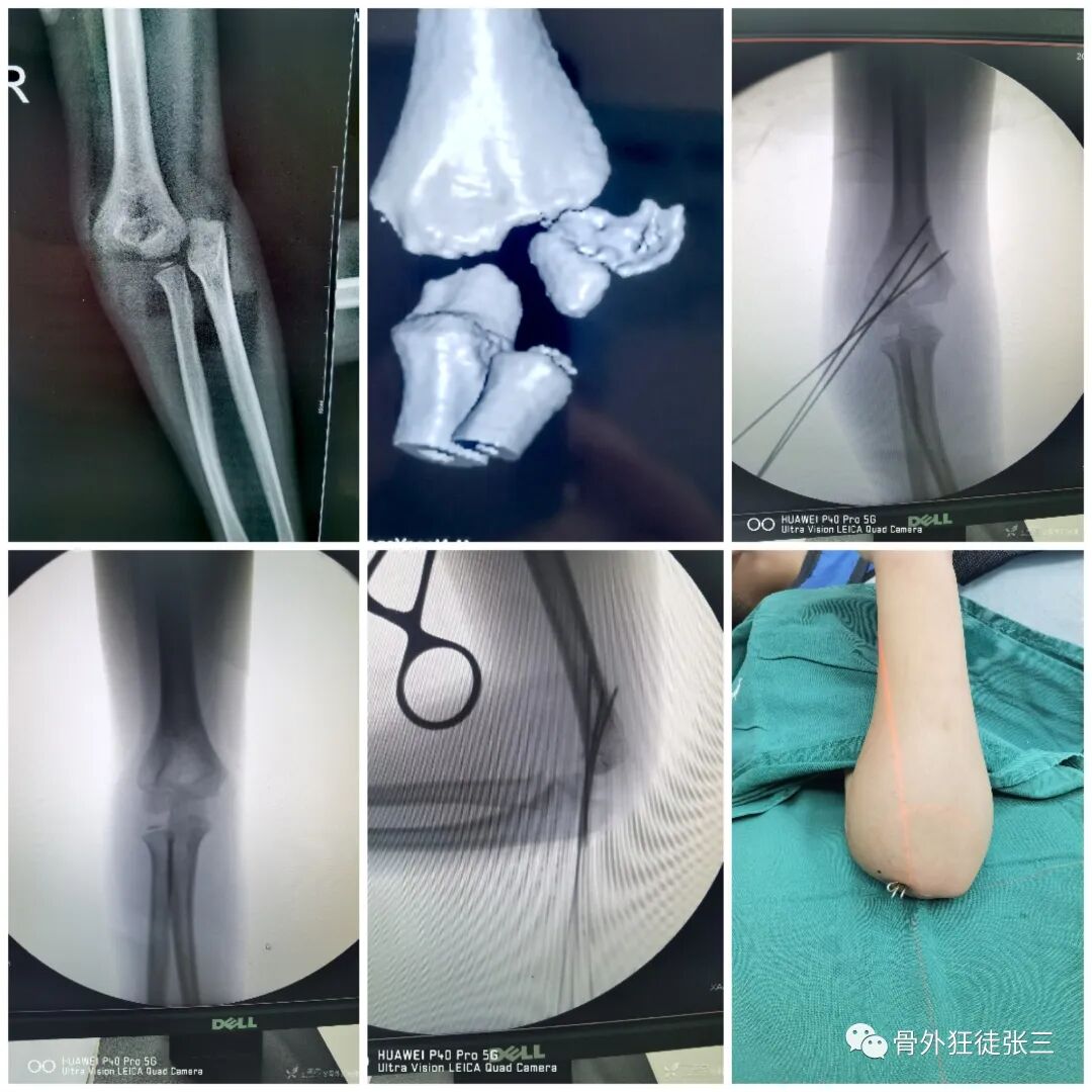 病例24,低位髁上骨折零切开,闭合复位克氏针发散固定