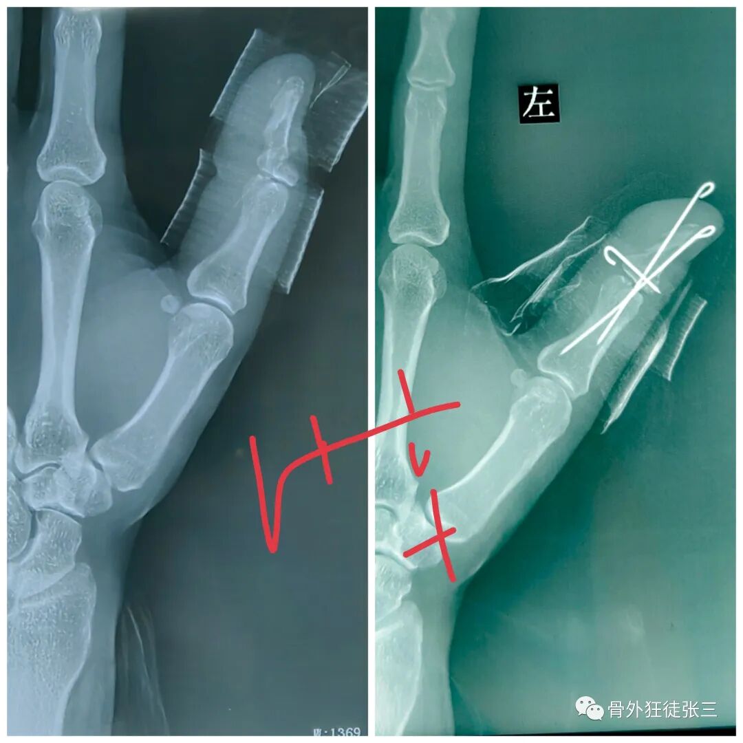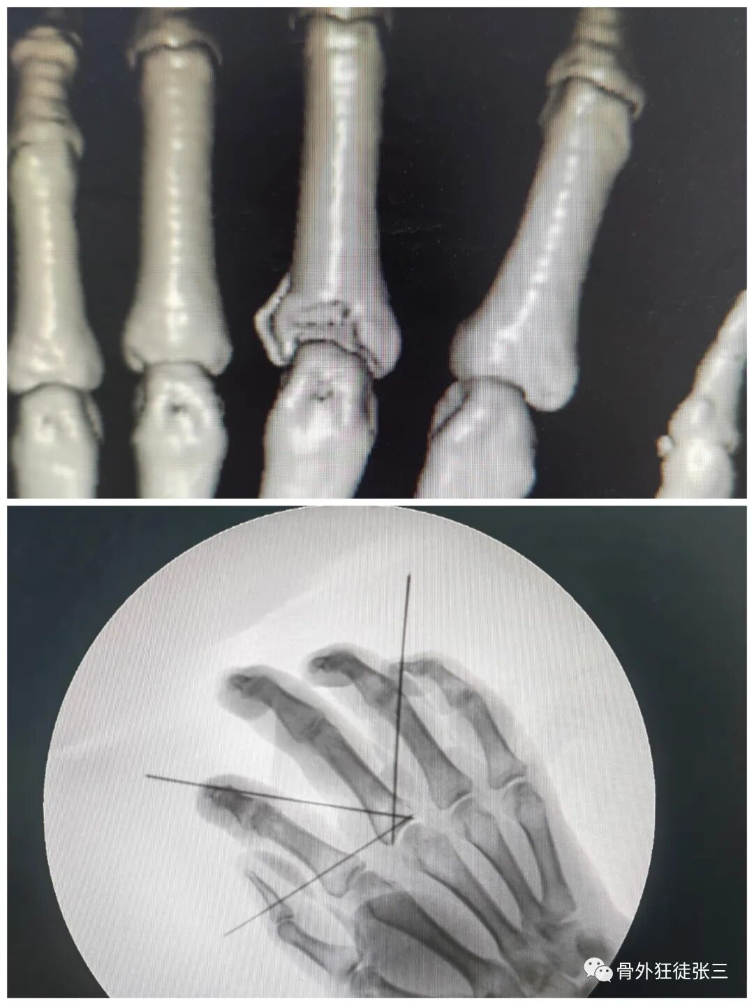 病例40,指骨ilon骨折,牵引,撬拔复位,克氏针