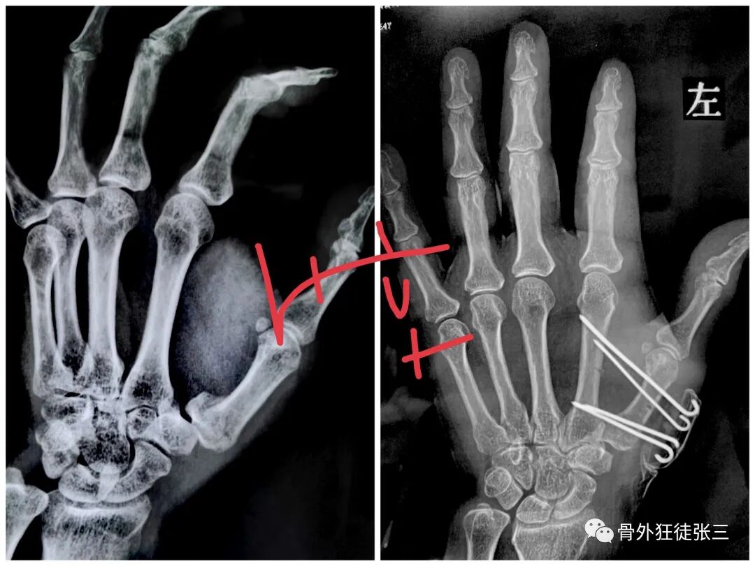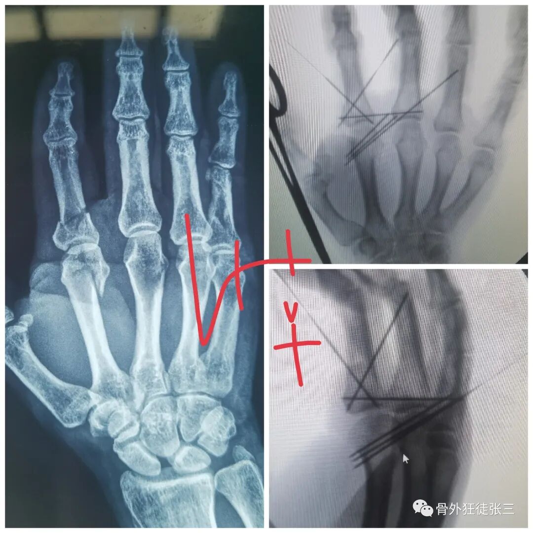 病例20,陈旧性第5掌骨头骨折,畸形,闭合复位,克氏针支架