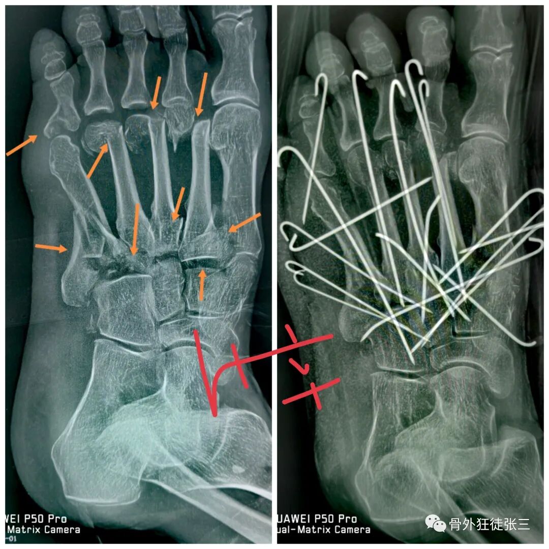 病例33,开放性Lisfranc损伤+第2345跖骨骨折脱位