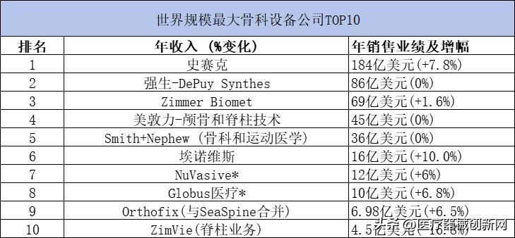 全球排名Top 10都有哪些:2023年8月16日,医疗器械行业网站Medical Design & Outsourcing 发布了最新的全球10大骨科器械公司排行榜。骨科械企巨头们的排位随着整体市场行情的变化,也进行了浮动。