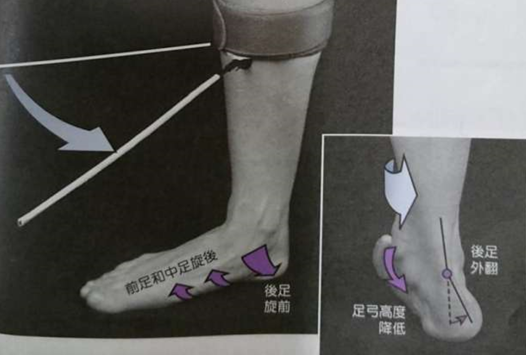 会产生后脚跟外翻,舟状骨下掉、前中足旋后,胫骨内转等连动