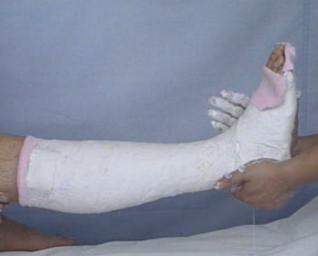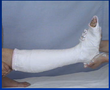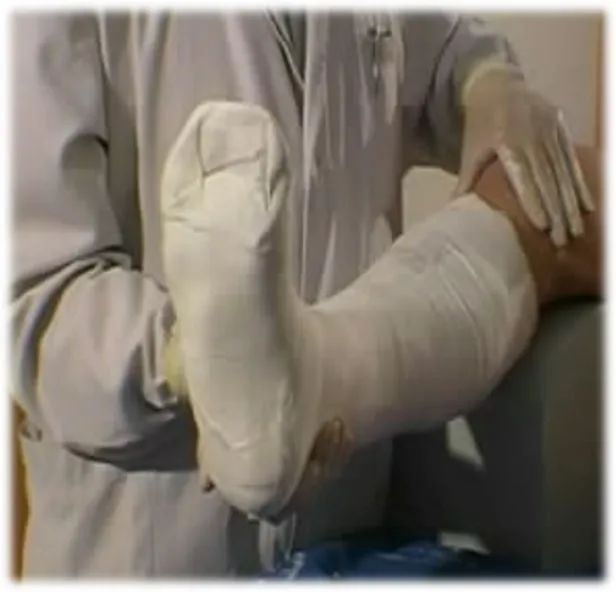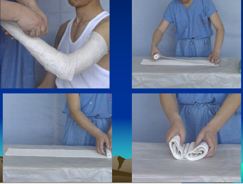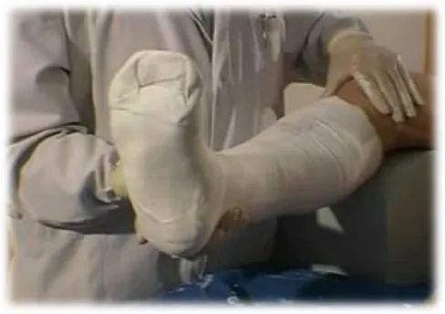 3、石膏管型:石膏绷带和条带相结合;用途:前臂,上肢,小腿,下肢;一经定型,容积固定;四肢创伤急性期慎用