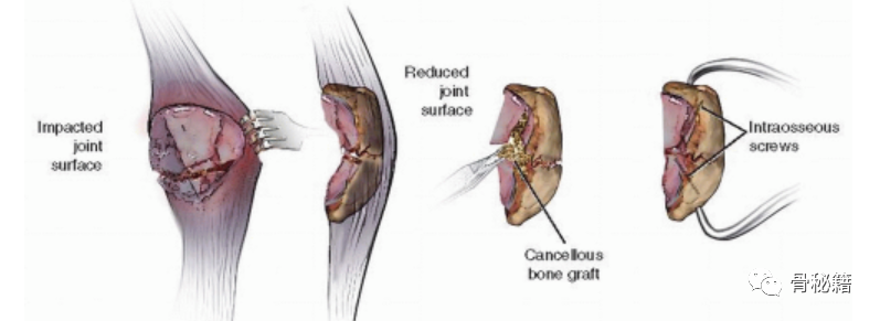 基于骨折机制的手术选择包括张力带结构、螺钉或钢板固定。重度粉碎或侧缘可通过髌骨切除术(部分或全部)进行治疗。在关节内骨折中,重要的是保留伸肌机制,并通过稳定的内固定获得关节表面的解剖修复。