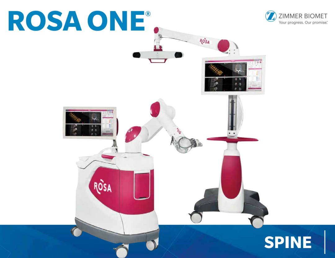 ROSA(Robot of Stereotactic Assistant,ROSA)手术机器人是一种新的无框架立体定向手术机器人。ROSA是由法国Medtech公司研发的新一代多功能手术机器人,自诞生以来就受到众多外科医生的青睐。在2016年时,Zimmer Biomet(捷迈邦美)以不低于1.32亿美元的价格收购了法国手术机器人公司Medtech,拥有了ROSA Brain和ROSA Spine机器人辅助手术平台的所有权。2019年1月,Zimmer Biomet获得FDA批准用于膝关节手术应用的ROSA平台和ROSA One Spine平台,并宣布计划在2019年中期ROSA Knee将正式进入膝关节市场。这一举措使得Zimmer Biomet成为第一个获得脑、脊柱、膝关节三大领域的FDA批准的公司。