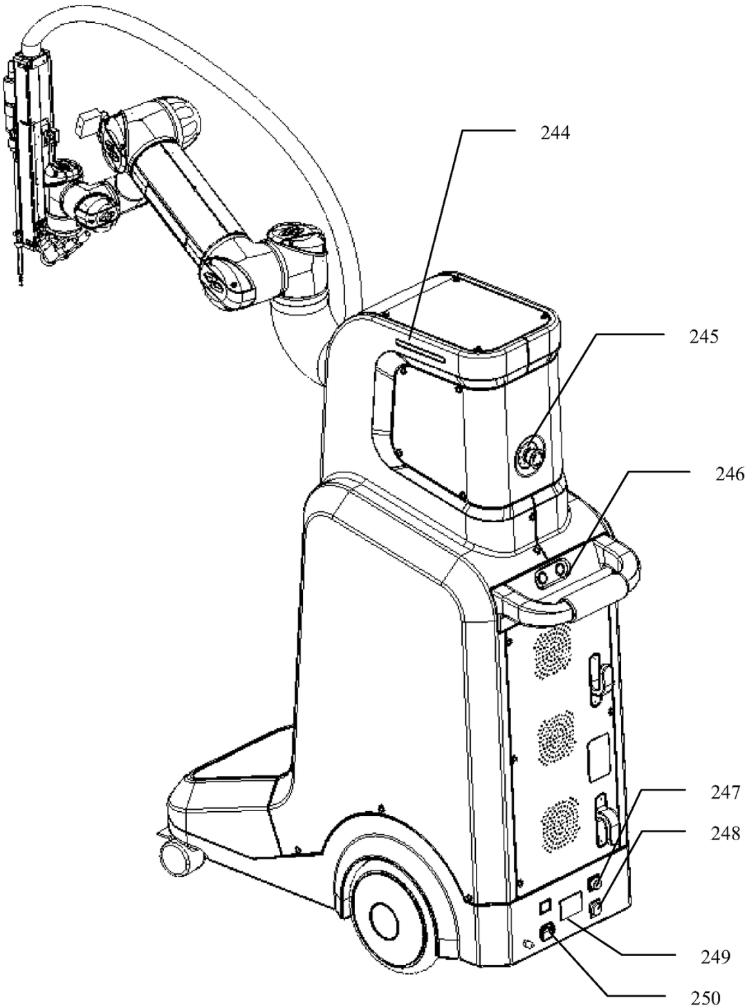 公开/公告号CN105848606B申请日2015-08-24发明名称一种智能骨科手术系统解决的技术问题在导航基础上可以实现精确打孔功能,实现手术操作,从而提高手术的精度和稳定度,减轻医生的工作强度,避免诸如人的疲劳、精神压力等因素对手术的干扰。技术方案本发明适用于医疗器械领域,提供了一种智能骨科手术系统,所述系统包括交换机、手术定位装置和分别与交换机连接的手术规划和监控装置、C形臂X射线机和骨科手术机器人;所述骨科手术机器人包括机器人本体和固定在机器人本体上的机械臂、固定在机械臂上的智能骨钻、通信模块、机械臂控制模块、智能骨钻控制模块、以及手术机器人电气控制模块,所述智能骨钻包括手术电钻、套接在手术电钻的电钻头的引导机构、推进机构、双目视觉识别系统、固定在手术电钻上的压力传感器和骨钻控制器。本发明的智能骨科手术系统中的骨科手术机器人在导航基础上可以实现精确打孔功能,实现手术操作,从而提高手术的精度和稳定度,减轻医生的工作强度。相关附图