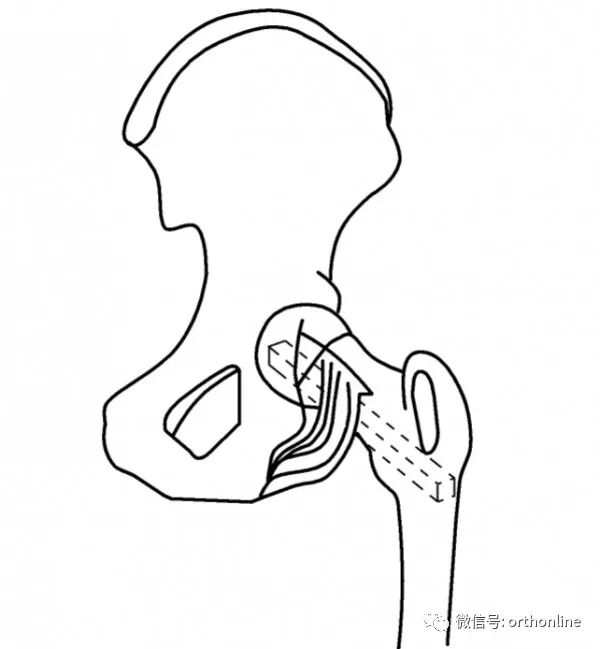 图3-2-2 股方肌骨瓣转位植骨、固定