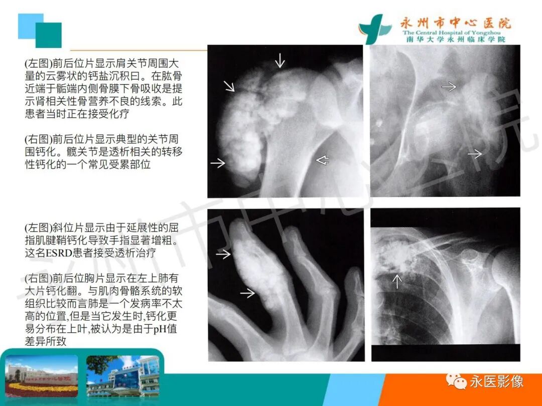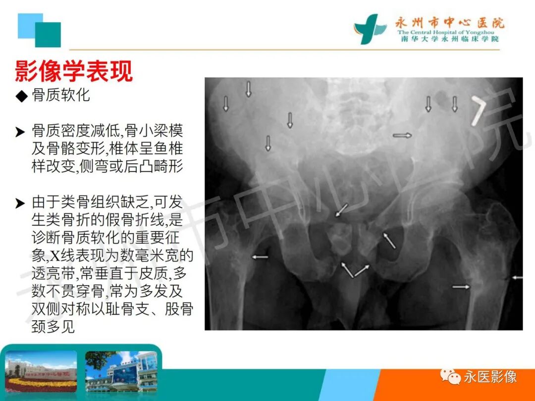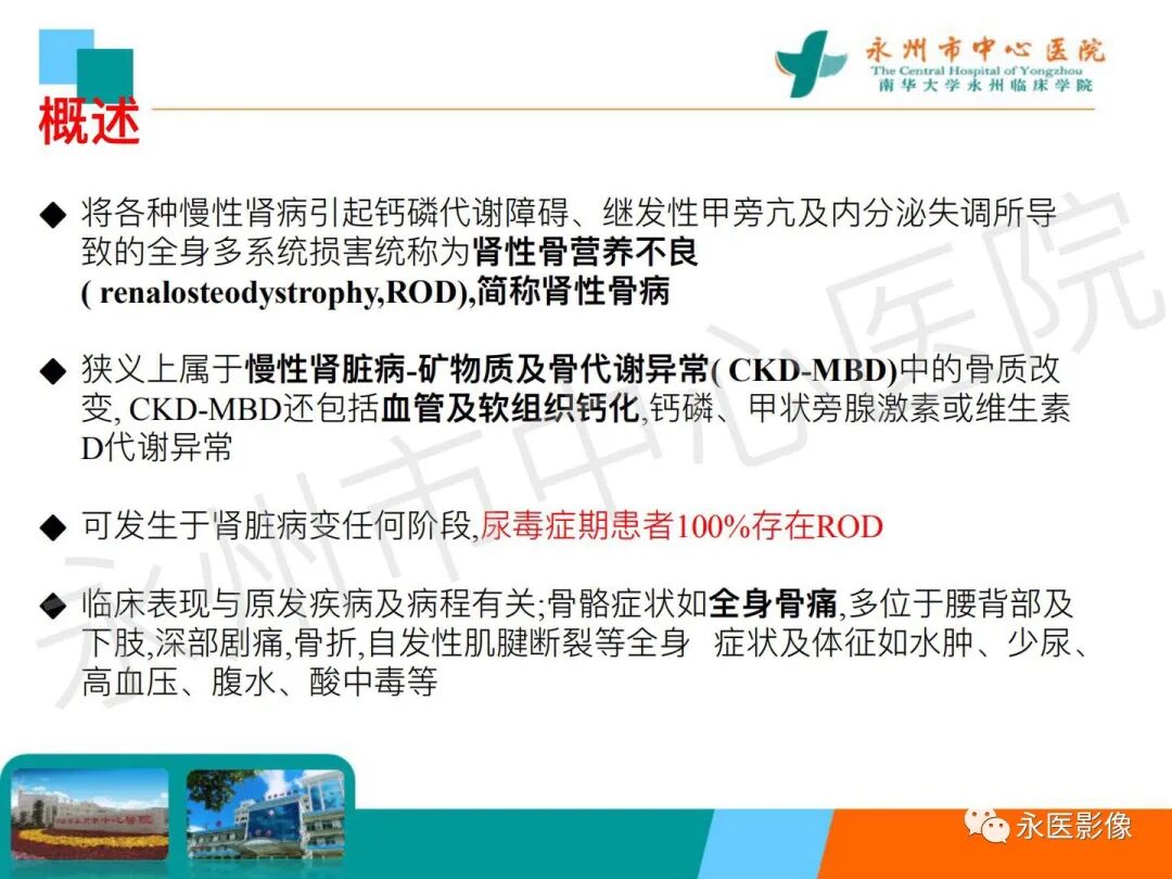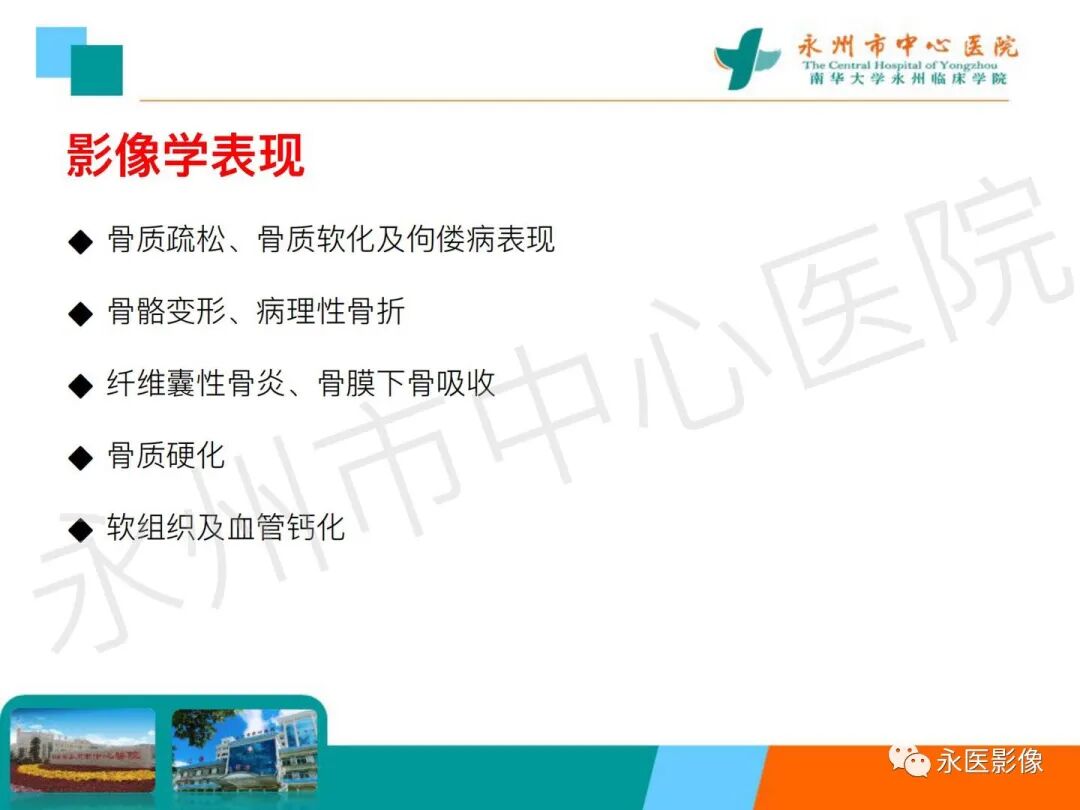 椎体夹心饼征:在X线平片上,胸腰椎椎体上、下缘终板各形成一条硬化带,每个椎体中心可见一条透明带,相互并行的硬化带和透明带与英式橄榄球衫(rugby sweater)上的条纹类似,西方学者称之为橄榄球衫椎体(rugger jersey spine)。这种两条硬化带中夹一条透明带的表现与中国的夹心饼亦相似,国内学者称之为夹心饼征。椎体终板上下缘的硬化带代表过多的骨样物质沉积,虽然它们的骨化并不充分,但这些骨样组织与正常椎体相比密度增加,在Ⅹ线照片上显示为不透光性,常为慢性肾衰竭所致