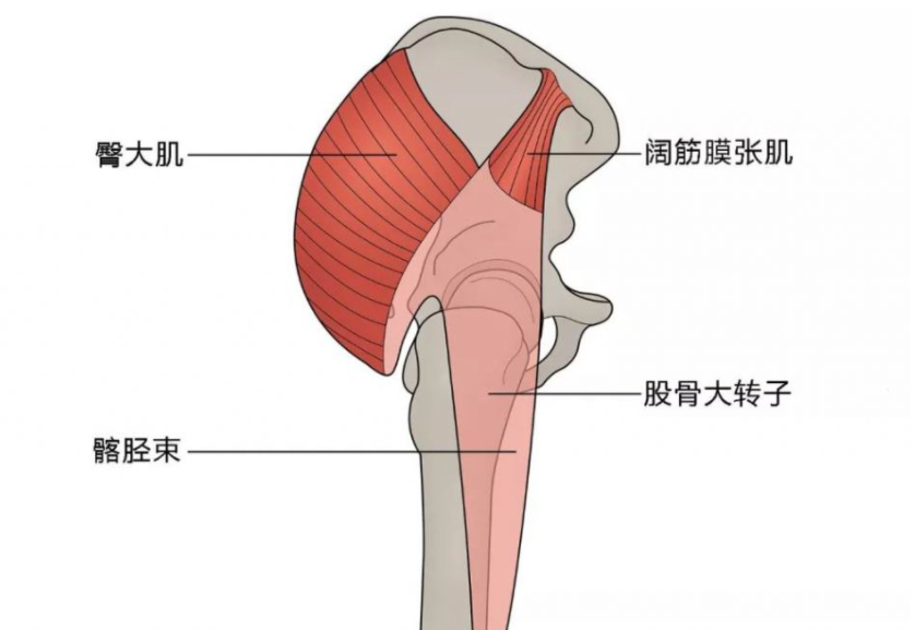 在解剖学上,髂胫束(iliotibial band, ITB)是包绕大腿深筋膜—阔筋膜的外侧增厚部分,从髂嵴前缘的外侧缘起,分为上下两层,包裹阔筋膜张肌,并与之紧密结合不易分离,下面的纵行纤维明显增厚而呈扁带状,其后缘延续于臀大肌肌腱,止点附着于胫骨外侧髁、腓骨头和膝关节囊。