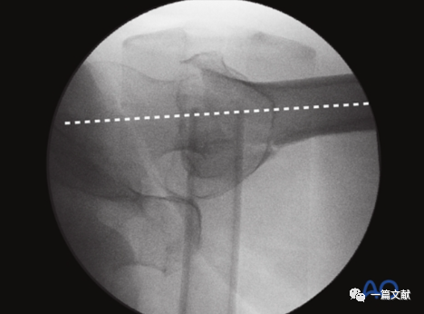 体位如下图,C臂机从水平位适度旋转,使透视射线与冠状面夹角约15°。