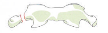 骨折线表现典型的创伤性枢椎滑脱骨折线通过峡部(Ⅰ型),但约50%的病例骨折线通过寰枢关节(Ⅱ型)。创伤性枢椎滑脱骨折线有时是不对称的,甚至有关节的撕脱骨折(Ⅲ型) (图16)。