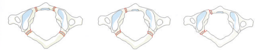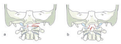 - C1型寰枢关节旋转脱位不伴有寰椎前移,横韧带完整。