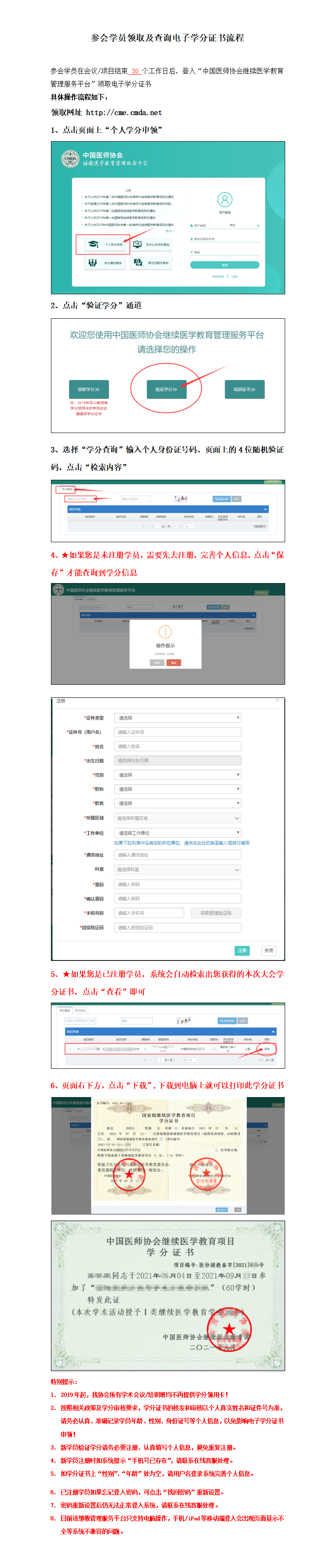 6月25日后将核对所有学分领取条件,进行核销上报。核销完成约60个工作日后,满足条件的参会代表可在中国医师协会继续医学教育管理服务平台领取学分证书。
