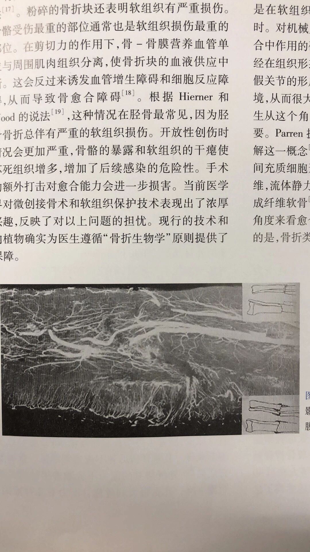 图1 桡骨骨折3周后微血管造影,显示修复过程中出现新的骨外膜和骨内膜血管(图片得到 Rhinelander等的授权)