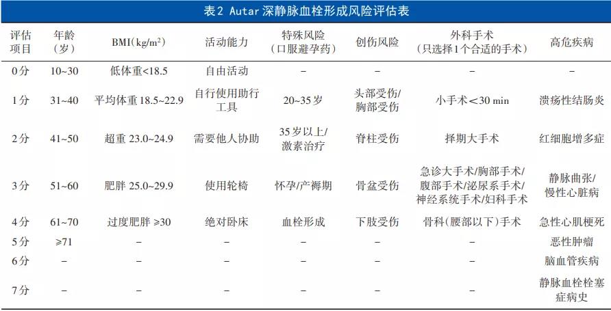 注:①评估时机:高风险人群入院24 h内,手术后患者即时完成;≥15分者根据活动内容的改变及时评估,(至少每3日1次);<14分 者每周评估1次。②评估方案:≤10分为低危,进行基础预防;11~14分为中危,进行基础预防+物理预防;≥15分为高危,进行基础 预防+物理预防+药物预防