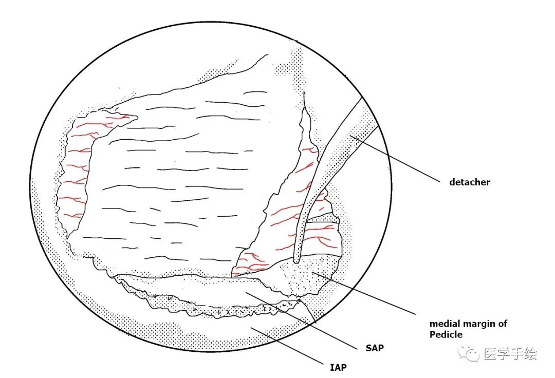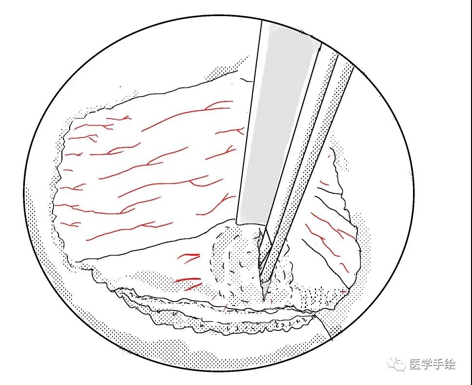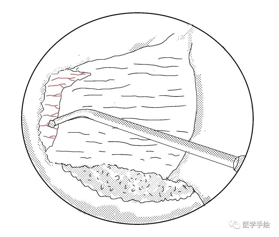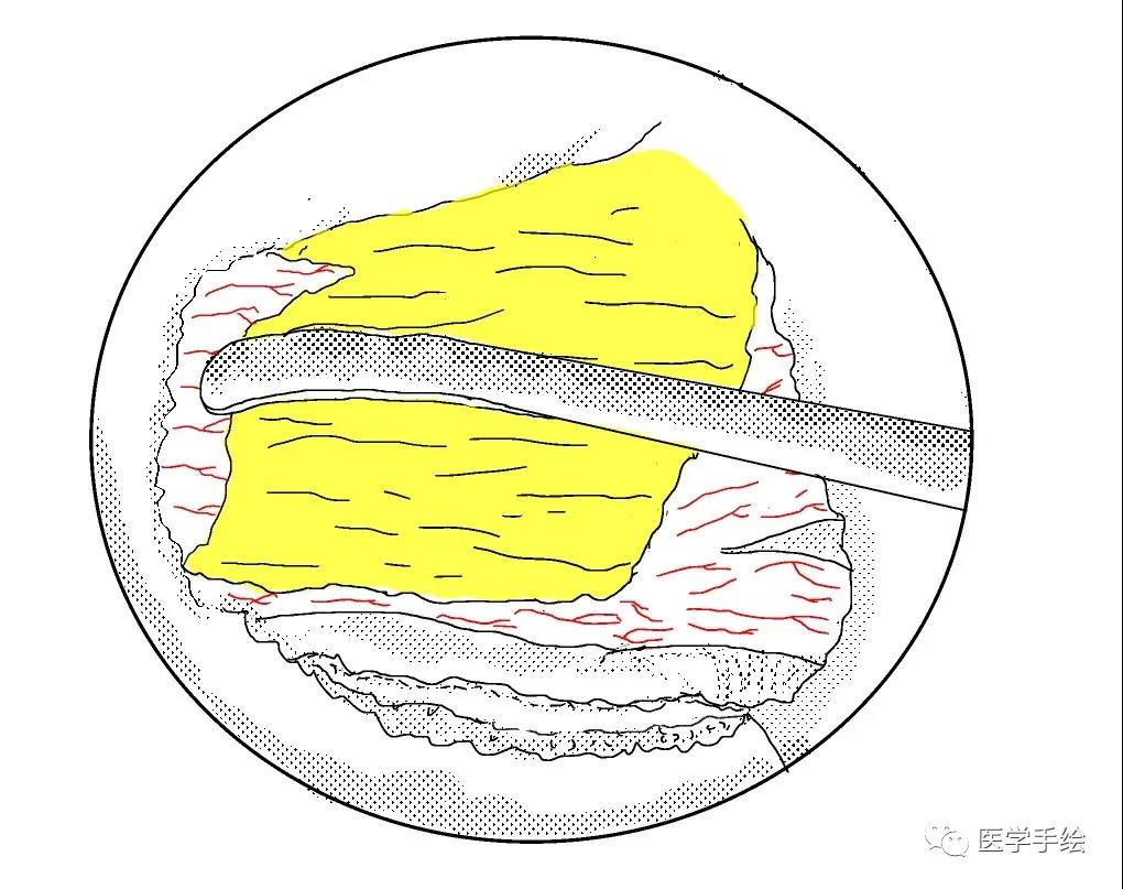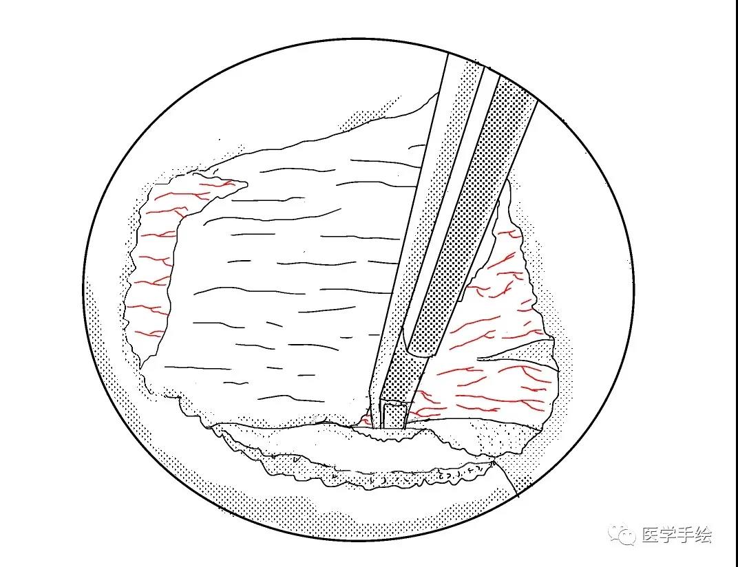 本期医学手绘为UBE腰椎间盘摘除及同侧侧隐窝减压的手绘流程