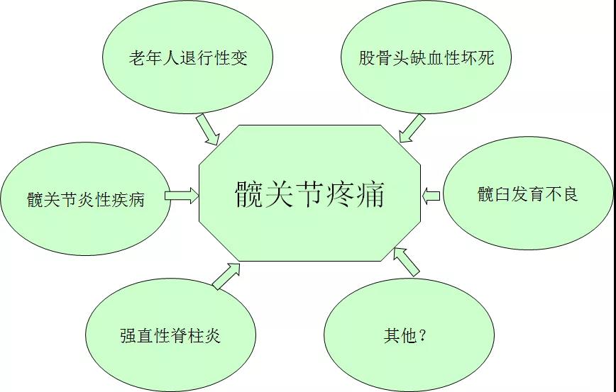 - 以髋关节解剖结构异常而引发股骨近端与髋臼间发生撞击,导致髋关节盂唇和关节软骨的退行性化,从而引起髋关节慢性疼痛,髋关节活动范围特别是屈曲加内旋受限,最终为髋关节骨性关节炎。
