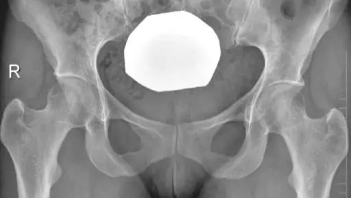 - 髋臼突出:更内侧(成人:男性>3mm,女性>6mm;儿童:男性>1mm,女性>3mm。)